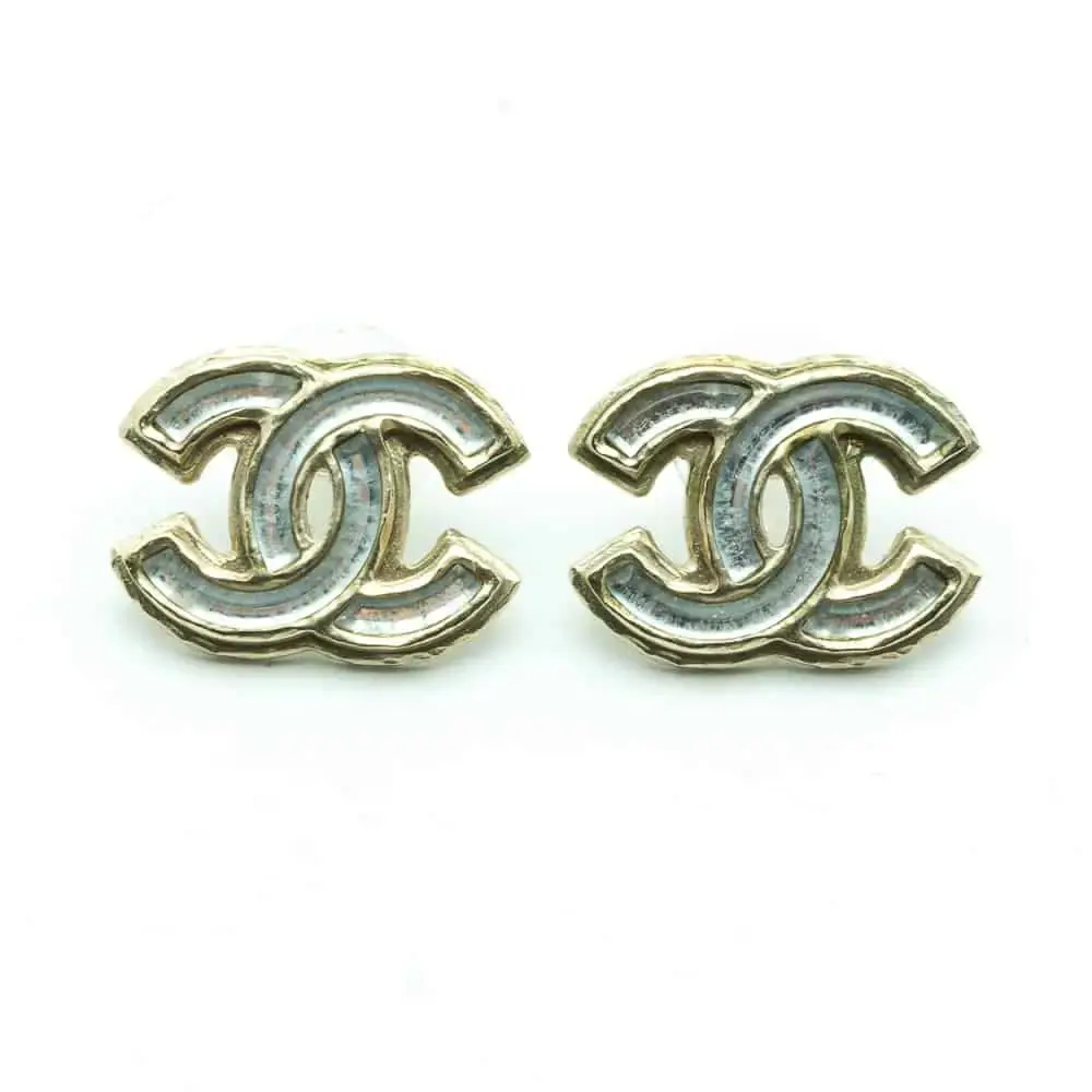 Chanel logo boucles d’oreilles doré et blanc nacré 2012