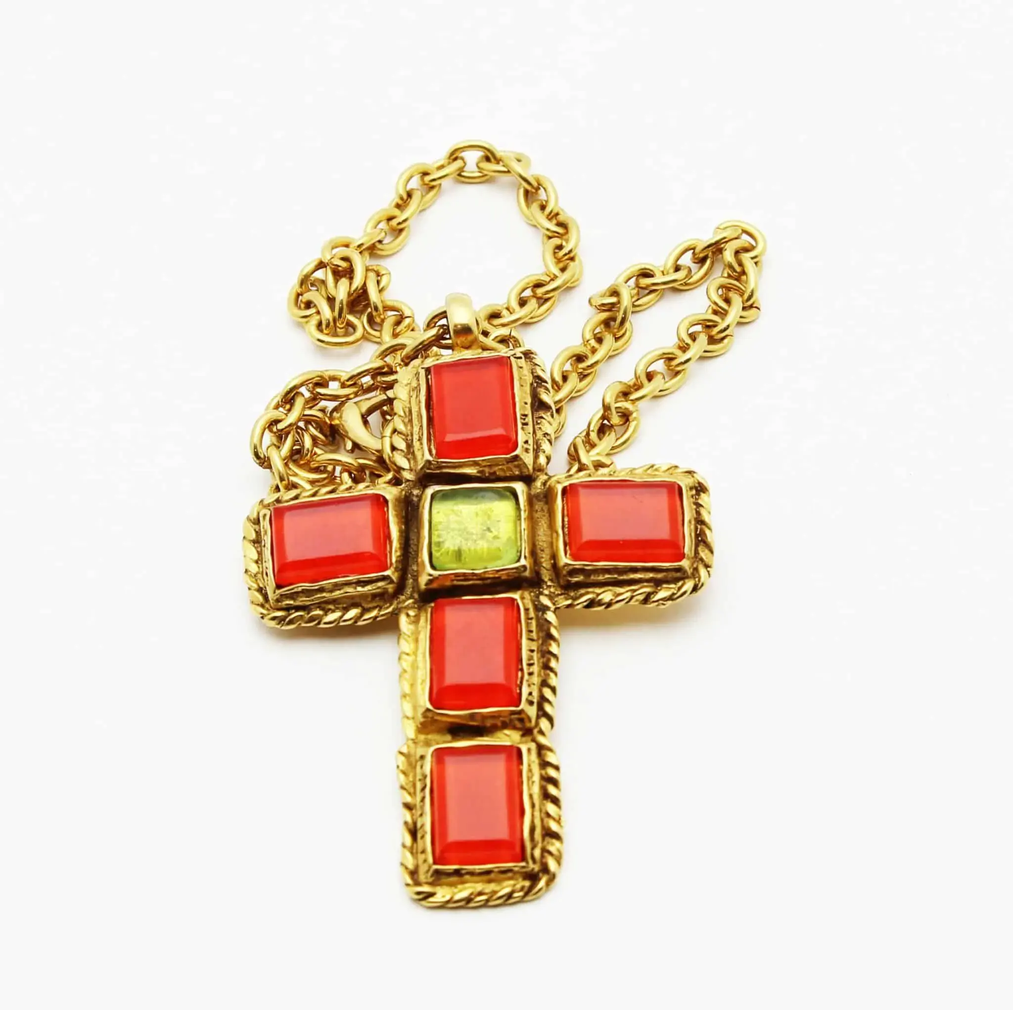 Christian Lacroix rare couture orange glass vintage cross pendant 90s