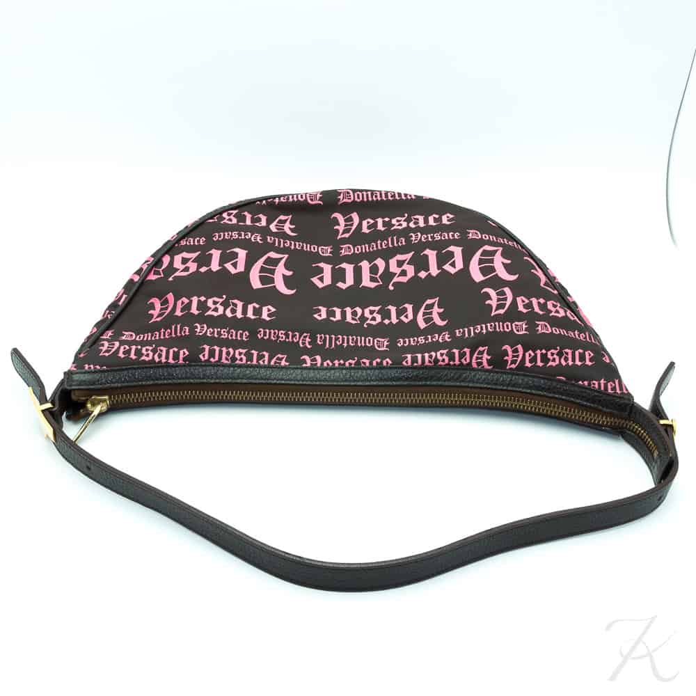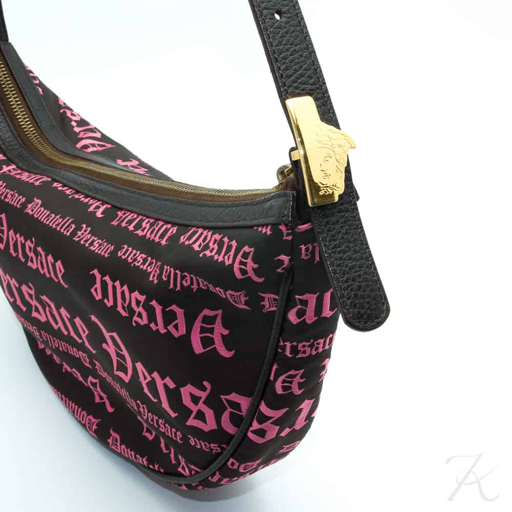 Rare à trouver et en parfait état. Sac collector Gianni Versace, collection Newspaper, c.2000, canvas et cuir brun.