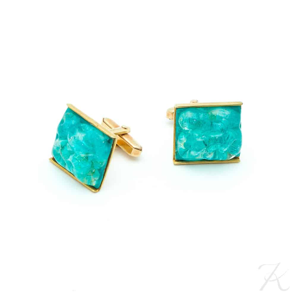 Unique turquoise boutons de manchette vintage émaille c.1950-60