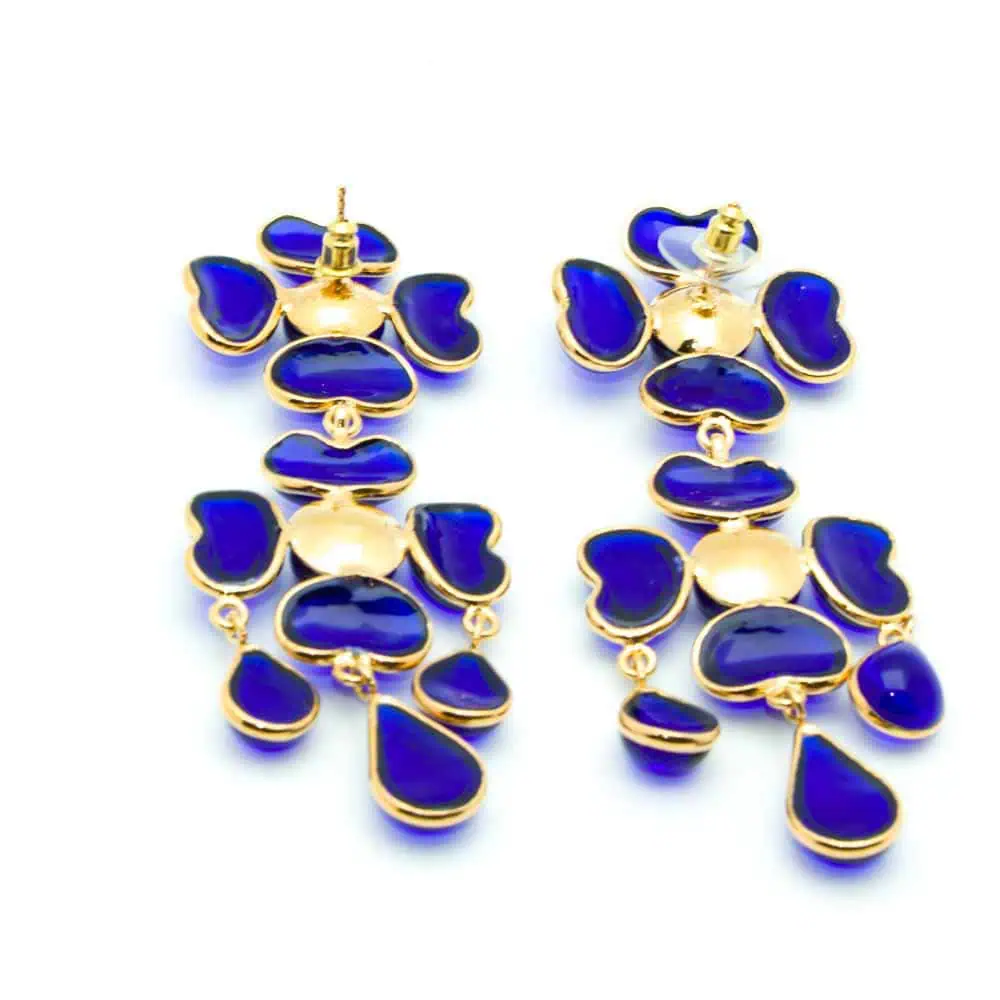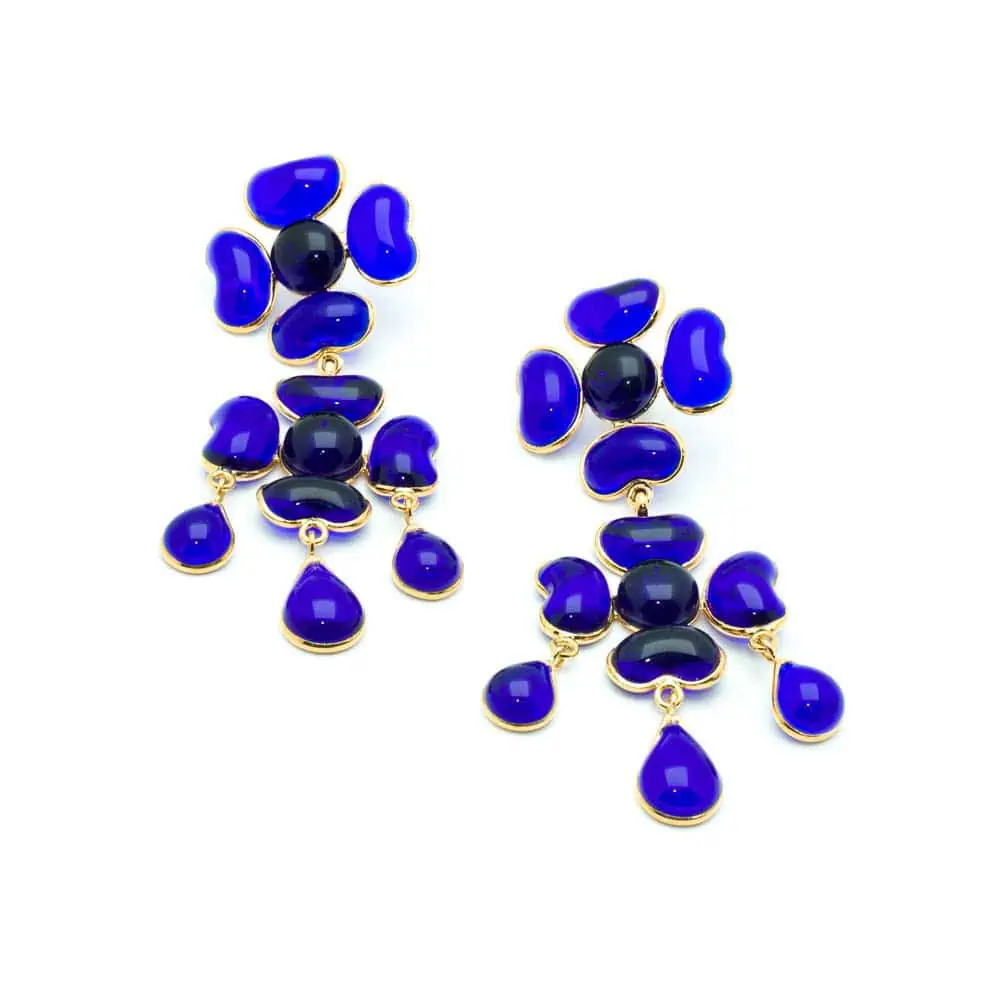 Fabulous French glass paste long flower earrings made by Augustine Paris, the oldest Gripoix Family.