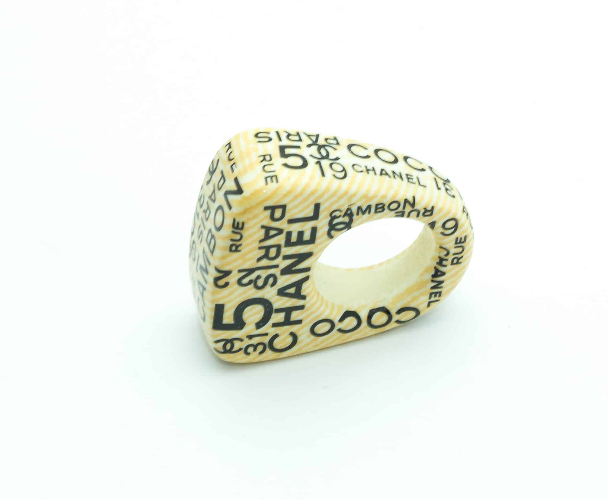 Chanel Cambon very nice ring in cream resin with black writting.