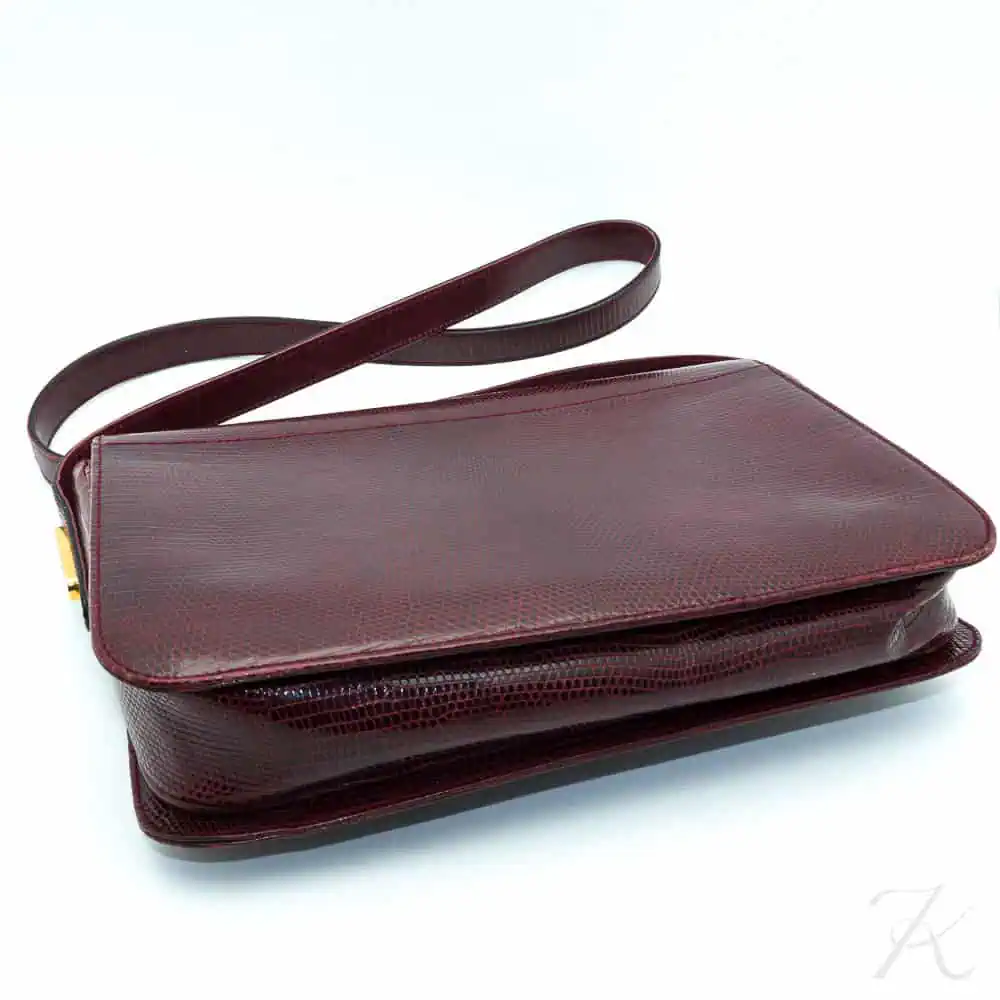 Gucci – Vintage shoulder bag in genuine burgundy lizard, dating from the 1970s, featuring the iconic “Interlocking G” clasp.