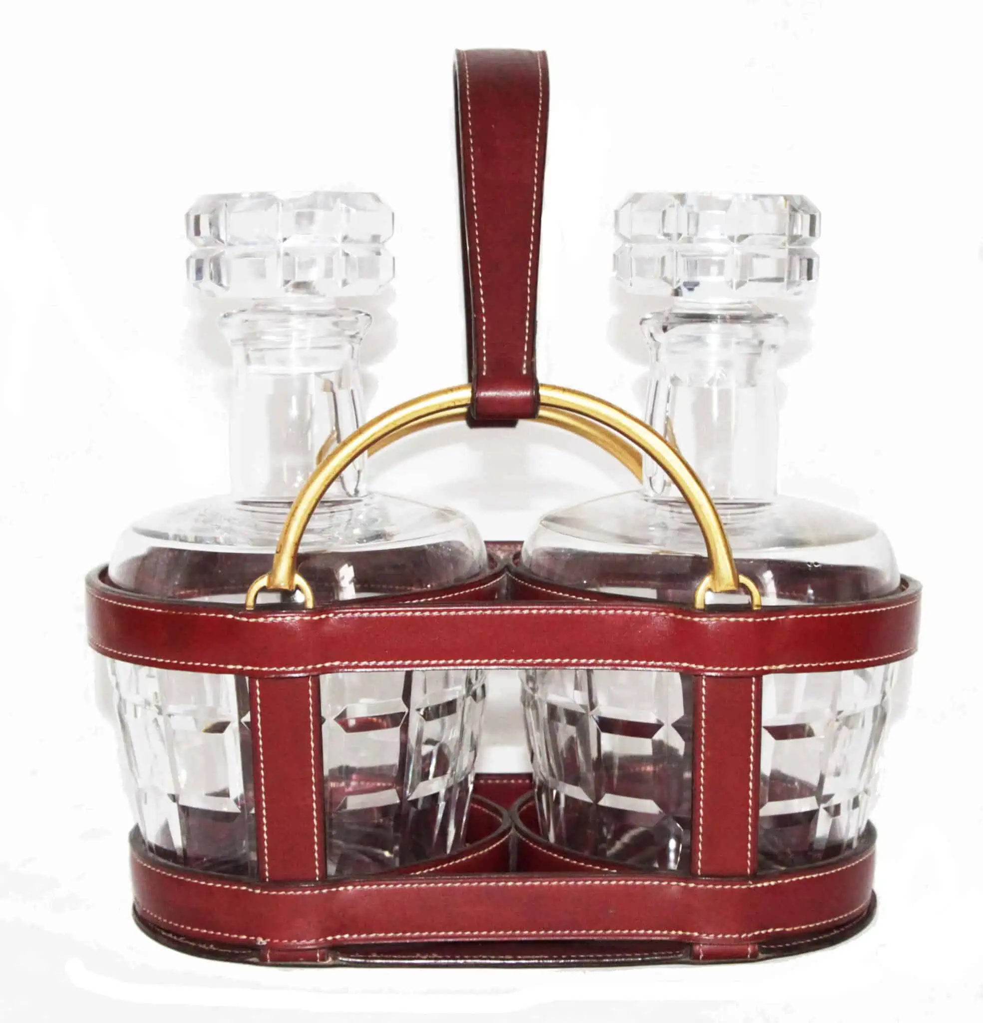 Rare Hermes vintage collector set of the 60s, decanter holder and its Baccarat carafes.