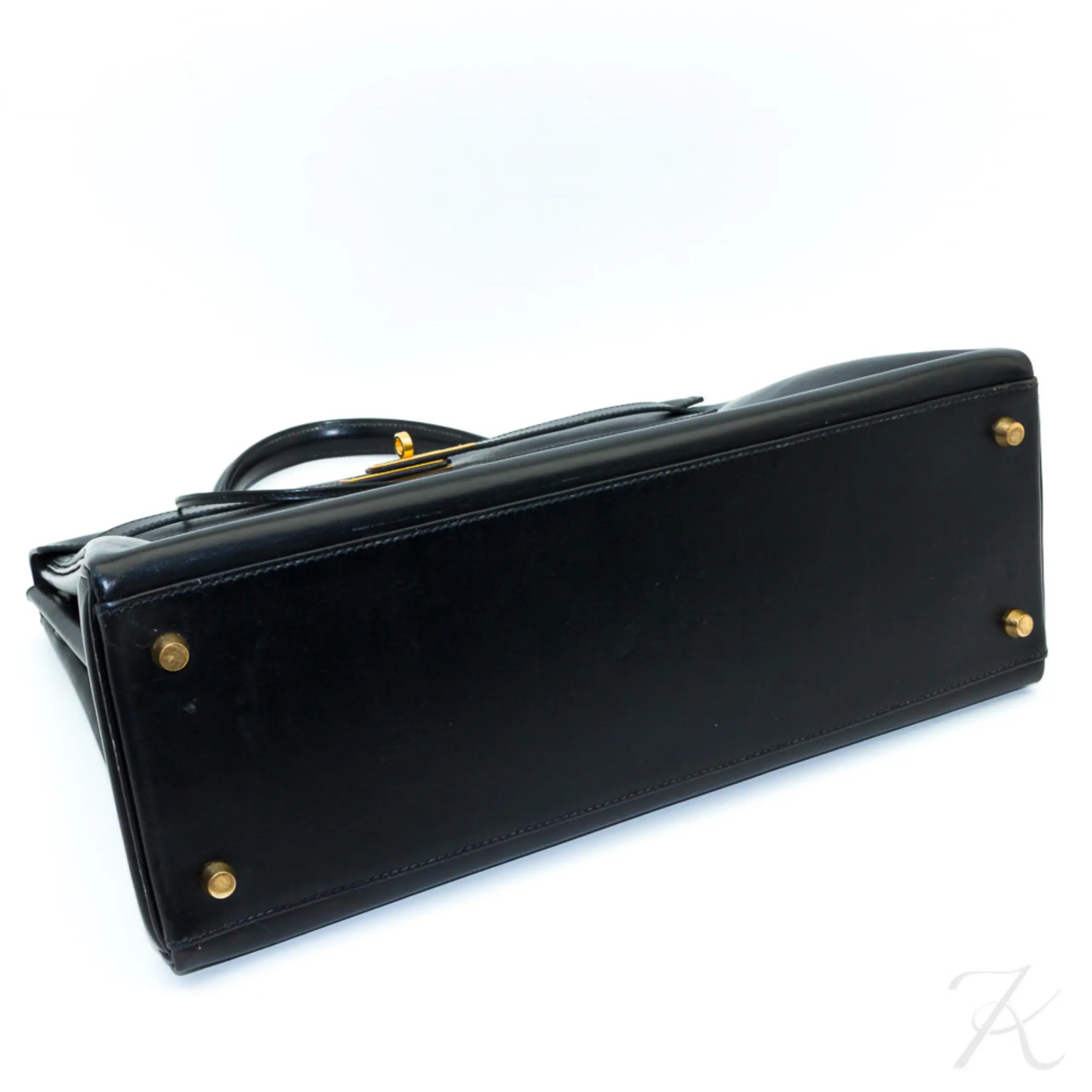 Curated for this incredible quality of box leather. Must-have and vintage beauty of Hermès, Kelly in black box leather, gold plated metal.