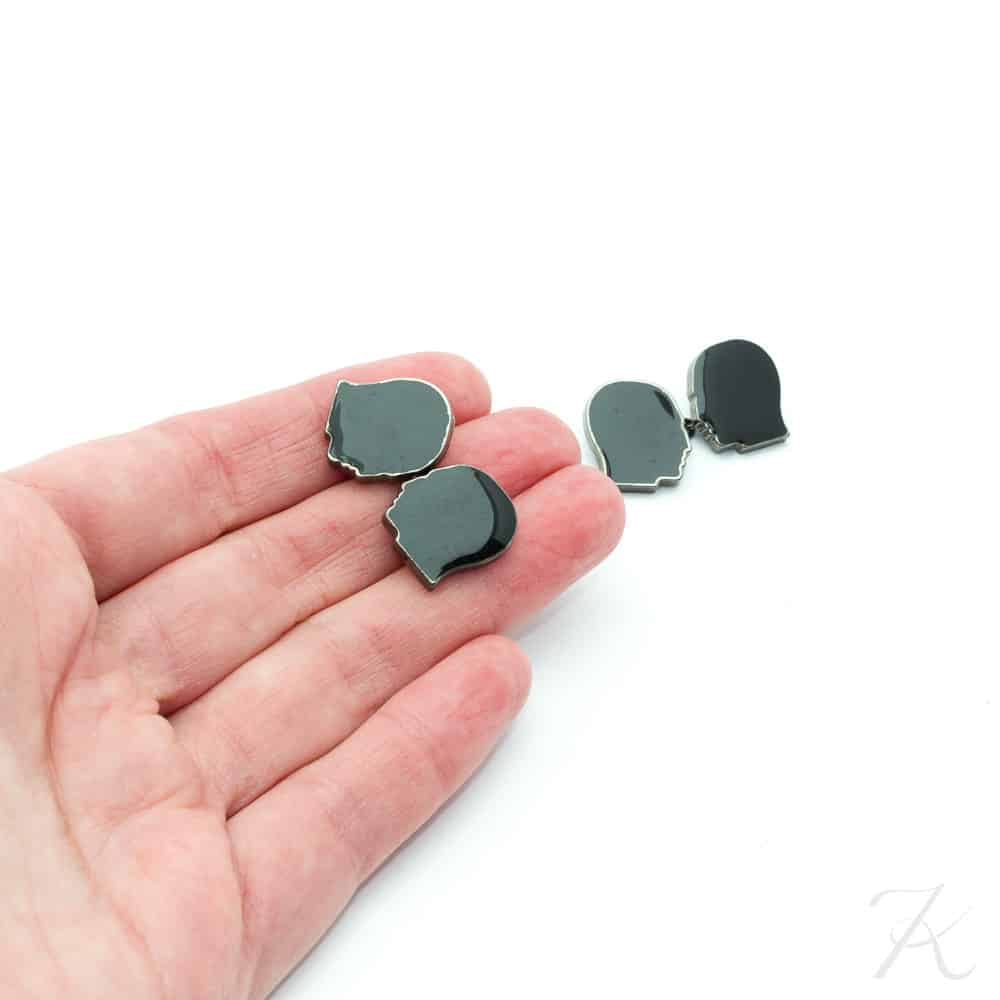 Rare and great Jean-Paul Gaultier vintage profile, face cufflinks. Black enamel. C.2000