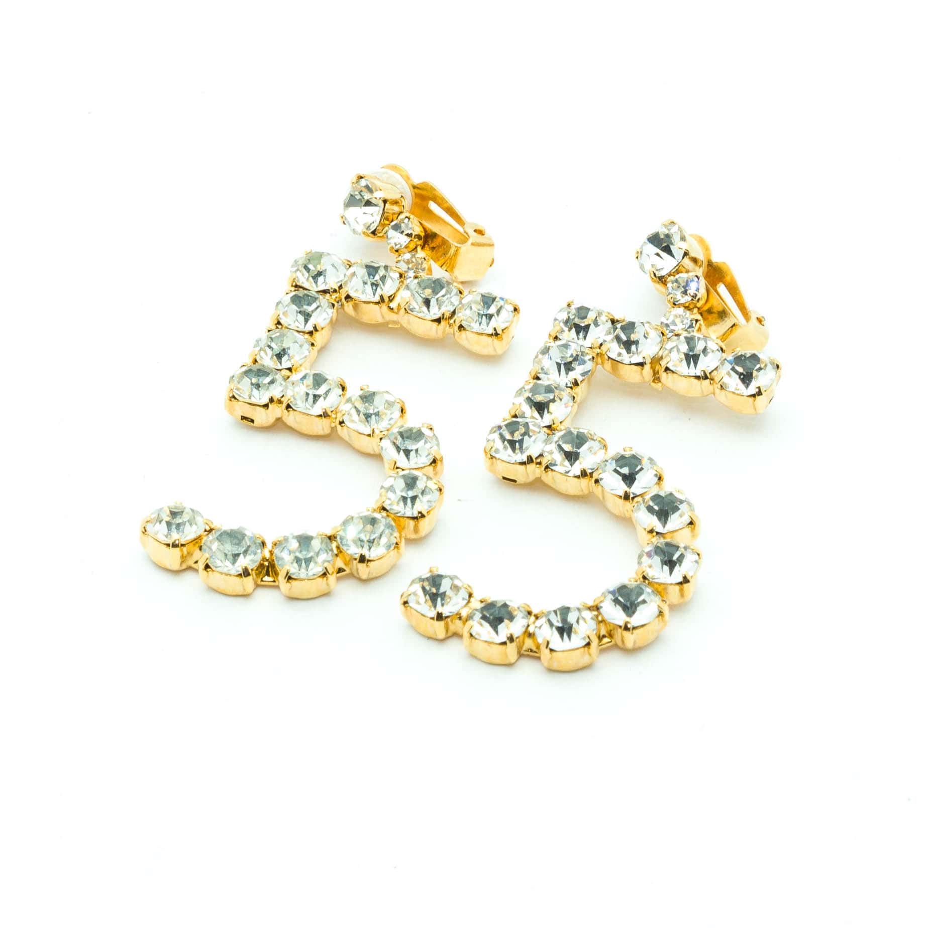 So nice and sparkling vintage n5 earrings from the 80s. In the style of Chanel n5 !!! Beautiful quality. Crystal stones, gold plated metal.